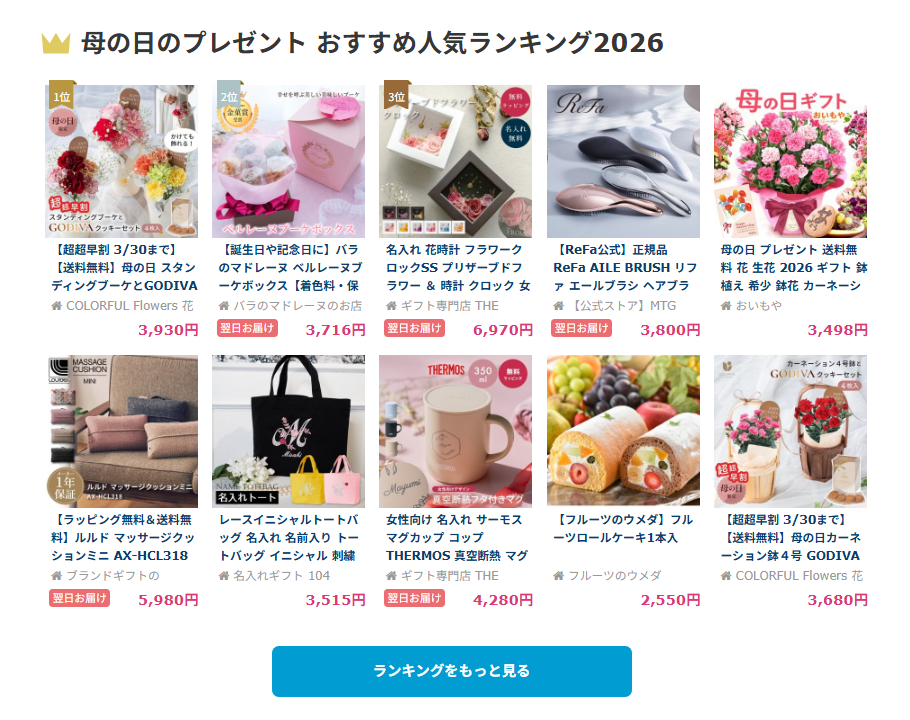 母の日ギフトを選ぶなら「ギフトモール」がおすすめ